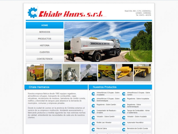 Sitio web institucional de empresa de venta de equipos regadores para camiones. (PHP, mySQL)