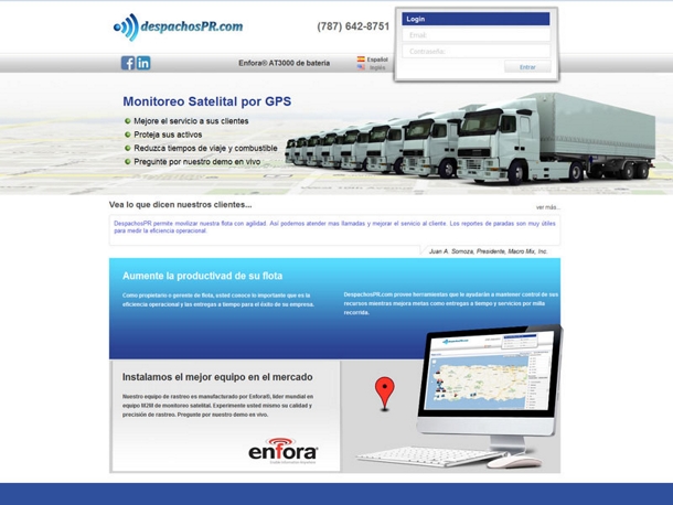 - Análisis, desarrollo, implementación y mantenimiento de sitio web para seguimiento y vigilancia satelital de vehículos.